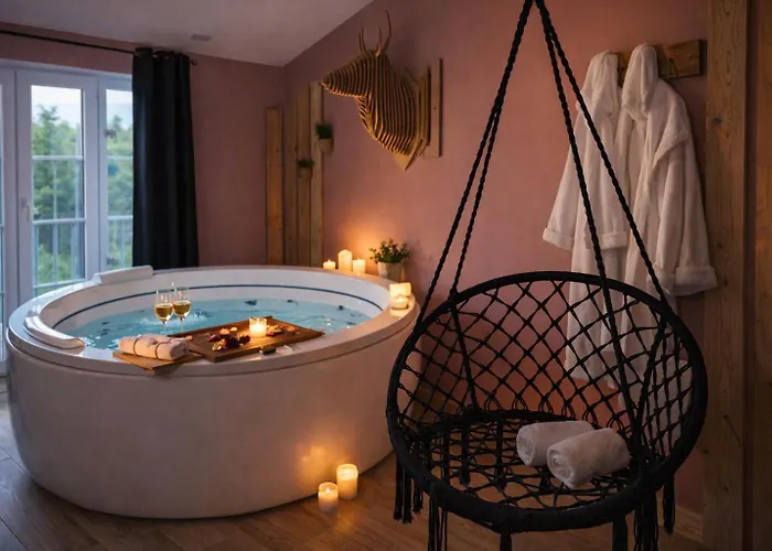 Az 1 szobás Suite Romantique & Spa Prova - Love Room - Retroprojecteur Netflix Bellême egy 40 m²-es területen kínál pezsgőfürdőt a kellemesebb időtöltés érdekében. Az Etang de la Herse nagyjából 2 km-re, a Belleme Golf pedig alig egy 7 perces sétára található az apartmantól.